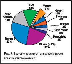 По производству керамических конденсаторов Yageo занимает 4-е место, уступая лишь таким монстрам керамических технологий, как Murata, AVX и TDK. Суммарный объем производства керамических конденсаторов в 2001 году составил 80 млрд шт. (рис. 7).