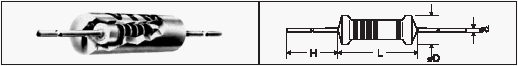 Помимо резисторов поверхностного монтажа Yageo производит широкий спектр выводных резисторов различного назначения. Самые распространенные среди них — металлопленочные резисторы общего назначения серий MFR и FMF. Рабочий слой этих резисторов наносится методом вакуумного напыления, за счет чего достигается прочное соединение металлической пленки и керамического основания резистора. Серия FMF предназначена для замены металлоксидных и проволочных резисторов небольшой мощности в тех областях, где требуется большая устойчивость резистивного слоя к перегрузкам при небольших размерах. Резисторы этой серии выпускаются с номинальными мощностями от 0,125 до 2 Вт и точностью от 1 до 0,1% (табл. 5). Таблица 5. Выводные резисторы Yageo общего назначения Серия резисторов | Рассеиваемая мощность, Вт | Рабочее напряжение, В | ТКС, ppm/°С | Размеры | B | D | H | d | CFR-12 | 0.12 | 150 | +350...–1000 | 3,3±0,4 | 1,8±0,3 | 28±2,0 | 0.5 | CFR25S* | 0.25 | 200 | 3,3±0,5 | 1,8±0,3 | 28±2,0 | 0.5 | CFR-25 | 0.25 | 250 | 6,3±0,5 | 2,3±0,3 | 28±2,0 | 0.6 | CFR50S* | 0.5 | 300 | 6,3±0,5 | 2,3±0,3 | 28±2,0 | 0.6 | CFR-50 | 0.5 | 350 | 9,0±0,5 | 3,2±0,5 | 26±2,0 | 0.6 | CFR1WS* | 1 | 400 | 9,0±0,5 | 3,2±0,5 | 26±2,0 | 0.6 | CFR-100 | 1 | 500 | 11,5±1,0 | 4,5±0,5 | 35±2,0 | 0.8 | CFR2WS* | 2 | 500 | 11,5±1,0 | 4,5±0,5 | 35±2,0 | 0.8 | CFR-200 | 2 | 500 | 15,5±1,1 | 5,0±0,5 | 32±2,0 | 0.8 | MFR-12 | 0.12 | 200 | ±15 ppm/°С ±25 ppm/°С ±50 ppm/°С ±100 ppm/°С | 3,3±0,4 | 1,8±0,3 | 28±2,0 | 0.5 | MFR25S* | 0.25 | 200 | 3,3±0,5 | 1,8±0,3 | 28±2,0 | 0.5 | MFR-25 | 0.25 | 250 | 6,3±0,5 | 2,3±0,3 | 28±2,0 | 0.6 | MFR50S* | 0.5 | 300 | 6,3±0,5 | 2,3±0,3 | 28±2,0 | 0.6 | MFR-50 | 0.5 | 350 | 9,0±0,5 | 3,2±0,5 | 26±2,0 | 0.6 | MFR1WS* | 1 | 400 | 9,0±0,5 | 3,2±0,5 | 26±2,0 | 0.6 | MFR-100 | 1 | 500 | 11,5±1,0 | 4,5±0,5 | 35±2,0 | 0.8 | MFR2WS* | 2 | 500 | 11,5±1,0 | 4,5±0,5 | 35±2,0 | 0.8 | MFR-200 | 2 | 500 | 15,5±1,1 | 5,0±0,5 | 32±2,0 | 0.8 |
