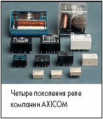 AXICOM: новое поколение телекоммуникационных и сигнальных релеКомпания AXICOM специализируется на производстве телекоммуникационных и сигнальных реле. В октябре 2000 г. она вошла в состав концерна Tyco Electronics и теперь имеет новую торговую марку. Ранее она была частью фирмы ALCATEL и работала на рынке реле более 50 лет. Продукция компании имеет высокое качество и пользуется заслуженным спросом. Компания продолжает выпускать электромагнитные реле несмотря на то, что сейчас имеется много других типов реле: транзисторные, твердотельные, оптоэлектронные и герконовые. Это можно объяснить тем, что электромагнитные реле обладают неоспоримыми достоинствами. Главные достоинства электромагнитные реле: - устойчивость и надежность в суровых условиях;