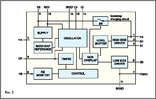 Электронные драйверы UBA2021 и UBA2022 предназначены для работы с компактными флуоресцентными лампами. Структурная схема UBA2021 показана на рисунке 2.