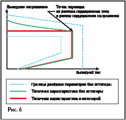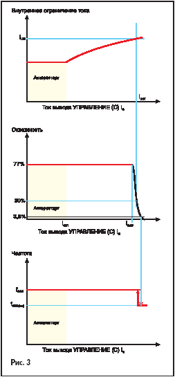 Изменение напряжения на конденсаторе С2 вызывает уменьшение скважности импульсов, подаваемых на мощный ключ, и, как следствие, уменьшение напряжения на стороне вторичной обмотки. Выходная характеристика микросхемы показана на рис. 6.