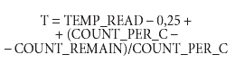 Как уже отмечалось, в DS1920 реализована возможность измерения температуры с более высоким разрешением. Для этого считывается значение температуры из регистра температуры и из него отбрасывается младший бит 0,5 °С. Полученное значение обозначается TEMP_READ. Затем считывается оставшееся в счетчике значение, которое остается после окончания периода измерения и обозначается (COUNT_REMAIN). Последней величиной, необходимой для расчета, является число отсчетов на градус при данной температуре (COUNT_PER_C). Реальное значение температуры определяется по формуле: