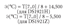 Это выражение справедливо как для отсчетов температуры, сохраненных в памяти, так и для регистра прямого считывания температуры (адрес 211h).