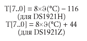 Температура вычисляется на основе значения T[7…0] по формуле: