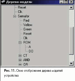 Структура моделируемого устройства отображается в окне «Дерево модели» (рис.11). С помощью этого окна разработчик может открывать другие окна анализа для элементов дерева. Кроме этого, с помощью данного окна производится отображение результатов мониторинга моделирования.