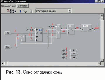 Для визуализации значений на схеме разработчик может воспользоваться окном отладчика схем (рис.13).