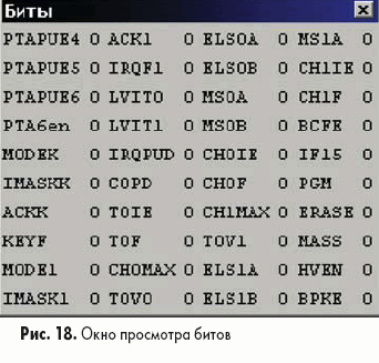 Для анализа значений внутренних переменных моделей предназначено окно просмотра регистров и флагов (рис.17), а также окно просмотра битов (рис.18). Значения соответствуют модельному времени установленному в «Навигаторе времени».