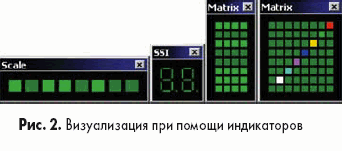 На рис.2 приведены примеры привычных для разработчиков устройств вывода: линейная шкала, семисегментные индикаторы, матричные дисплеи, включенных в комплект поставки HLCCAD.