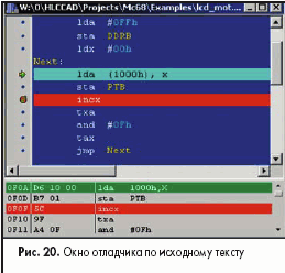 Также для отладки программного обеспечения предназначены окно отладчика по исходным текстам (рис.20) и окно дизассемблера (рис.21).