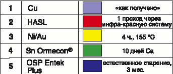 - для покрытий HASL,Sn Omercon и OSP существует эффект снижения паяемости в зависимости от типа условий: 10-дневный Ca >4-часового 155 °С>3-месячного естественного старение >1 прохода через инфракрасную систему;