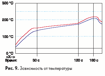 Чип-резисторы 1206 были припаяны к контактным площадкам печатных плат ИК-оплавлением в соответствии с температурной диаграммой, показанной на рис.9, с применением SnPbAg паяльной пасты типа «fine-pitch ».