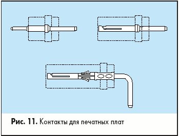 Штекер контакта для печатных плат бывает двух видов: прямой и угловой (рис.11).