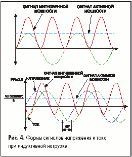 2Коэффициент мощности (PF)определяется сдвигом по фазе между напряжением в сети (частотой 45 –65 Гц) и током. Коэффициент мощности может быть определен как F =cos (&Q), где . представляет собой фазовый угол между напряжением и током в случае чистой синусоиды.