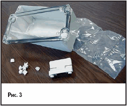 Кстати, об аксессуарах. GAINTA предлагает монтажные проушины и петли, превращающие крышку в откидную. У ENSTO количество аксессуаров впечатляет. Особенно тех, у кого нет собственного заготовительного цеха, кому вырезать, просверлить какую-нибудь пластину — целая проблема. Это и монтажная пластина из оцинкованной стали, и заглушки на винты для придания корпусу более аккуратного вида, и отрезки DIN-рейки по размерам корпуса, монтажные проушины, съемные монтажные кронштейны, нормальные петли (а не работающие на изгиб, как у GAINTA). Кроме того, можно заказать отдельно корпус или крышку, а не только комплект (рис. 2, 3).