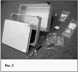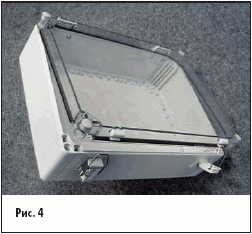Пожалуй, самыми распространенными стали корпуса фирмы GAINTA. Именно их в последнее время используют многие разработчики в своих конструкциях. Фирма GAINTA выпускает корпуса для различных категорий аппаратуры (пульты, источники питания, промышленная автоматика) и в разном исполнении (для внутренних помещений и для улиц, а также из специальных материалов, позволяющих приборам работать в условиях высокой влажности, агрессивных сред, высокой загрязненности). До недавнего времени я тоже использовал исключительно корпуса GAINTA, не замечая, что в России стали появляться корпуса и других фирм. В частности, для контроллеров наружной световой рекламы я применял герметичные корпуса серий G1XX, G2XX. Но однажды пришлось снять контроллер наружной рекламной установки для ремонта. И, как говорится, вскрытие показало, что неопреновый шнур, который уложен в лабиринтную канавку крышки, недостаточно герметизирует корпус: обнаружились следы влаги внутри. Выяснилось, что крышку пару раз снимали в мороз, и шнур не выдержал. Потерявший упругость шнур пришлось удалить совсем, а канавку для герметичности залить «Гермесилом» — такой герметик найдется у любого автолюбителя.