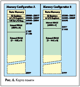 - JTAG-интерфейс для подключения эмулятора (в микросхемах с объемом ПЗУ от 16 кбайт);