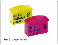 Для сохранения программы и данных при перебоях в питании LOGO! служит внешний модуль энергонезависимой памяти Flash EEPROM, который вставляется в гнездо на лицевой панели LOGO! Существуют желтые и красные модули памяти (рис.3), которые обеспечивают энергонезависимое хранение информации и могут использоваться для тиражирования программ. Желтые модули позволяют сохранять программу и данные. Красные модули дополнительно обеспечивают защиту программы от несанкционированного доступа.