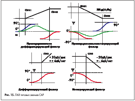 Для корректировки АЧХ к льца ИФАП, например, при использовании дробного деления (fractional-N) или при широкополосном синтезе, используют интегро-дифференцирующие звенья [2 ]. ЛАХ и ФЧХ типовых звеньев приведены на рис.14 –15.