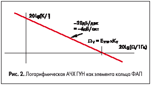 Перестраиваемый автогенератор — один из основных элементов кольца. Генератор, управляемый напряжением (ГУН), в кольце ФАП следует рассматривать как преобразователь отклонений частоты в отклонения фазы [1,2 ]. Но поскольку отклонение фазы — это интеграл от отклонения частоты, ГУН в кольце ФАП является интегратором с коэффициентом передачи K V /s є K V /(j w ).