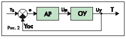 Для расчетных целей исходную схему упрощают до схемы, показанной на рис.2, где АР — регулятор, ОУ — объект управления.