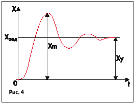 Величина перерегулирования зависит от вида отрабатываемого сигнала. При отработке ступенчатого воздействия по сигналу задания величина перерегулирования определяется по формуле