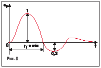 2. Процесс с 20-процентным перерегулированием и минимальным временем первого полупериода (рис.8). Такой процесс применяется для настройки большинства промышленных САР, так как он соединяет в себе достаточно высокое быстродействие (t1=min) при ограниченной колебательности (s=20%).