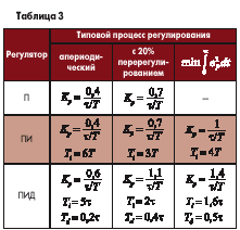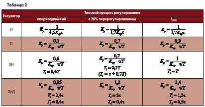 Минимально возможное время регулирования для различных типов регуляторов при оптимальной их настройке определяется таблицей 1.
