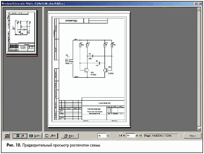 - Выполним команду меню File |Print Preview. Откроется окно предварительного просмотра распечатки схемы. Если были настроены вертикальная ориентация бумаги и автоматическое масштабирование, то распечатка будет выглядеть, как показано на рис.10.