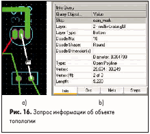 Информация об указанном объекте будет отображена на панели управления (рис.16,b ). Легко видеть, что наш объект представляет собой незамкнутую полилинию (Type: Open Polyline), нарисованную апертурой D10 (Dcode No:10) круглой формы (Dcode Shape: Round) диаметром 0.304799 мм на слое 2 — Multivibrator.gbl типа Bottom.