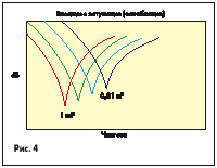 Для конденсаторов, модель которых представляет собой последовательное соединение R, L и С, точка минимального импеданса соответствует последовательному сопротивлению (ESR) и определяет частоту, при которой L и С, образующие последовательную резонансную цепь, имеют одинаковые сопротивления. При фильтрации это можно охарактеризовать как точку, в которой имеет место максимальное подавление, как показано на рис.4.