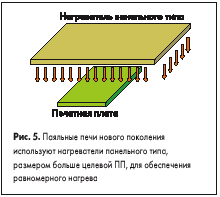 Кроме того, в современных паяльных печах, в отличие от старых моделей, применяются ИК-нагреватели панельного типа. Панельные нагреватели обеспечивают более равномерный нагрев (рис.5).