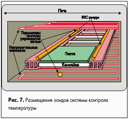 Таким образом,требуется прецизионное управление температурой, из-за того, что мощность ИК-нагрева очень чувствительна к температуре нагревателя. В то же время конвекционный механизм не является столь мощным, но обеспечивает качественный равномерный нагрев в печи.