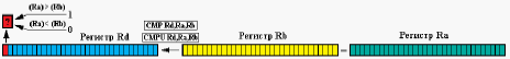 При этом информация о соотношении величин содержимого регистров с номерами a и b содержится в старшем (знаковом) разряде регистра d. Рисунок 8 поясняет процесс выполнения инструкций сравнения двух целочисленных операндов.