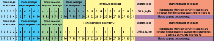 Операции поразрядного сложения двух операндов осуществляются с помощью инструкций OR и ORI, форматы которых определены в таблице 10.