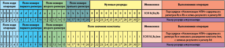 Форматы инструкций XOR и XORI, предназначенных для выполнения поразрядной операции «Исключающее ИЛИ», представлены в таблице 11.
