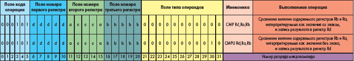 К группе арифметических команд относятся также инструкции сравнения двух целочисленных операндов CMP и CMPU. Информация о форматах этих команд содержится в таблице 7.