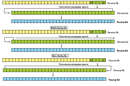 Рис. 13. Выполнение основных операций арифметического и циклического сдвига данных