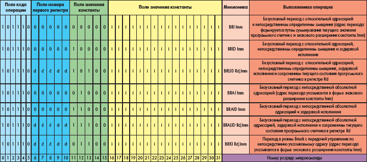 Микропроцессорное ядро MicroBlaze поддерживает четырнадцать разновидностей команд безусловной передачи управления в программе, форматы которых приведены в таблице 17.