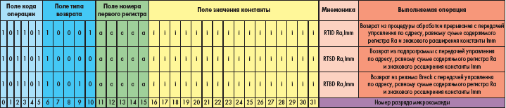 В системе команд микропроцессорного ядра MicroBlaze представлено три инструкции возврата управления в программе: