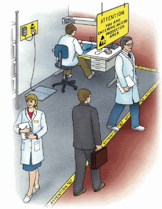 - временных посетителей ESD-зон следует предварительно информировать о том, что можно и чего нельзя делать в защищенной зоне; способ представления информации такого рода можно считать учебным курсом начального уровня;