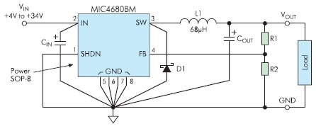 Рис. 2. Для стабильной работы MIC468x необходим минимум внешних компонентов