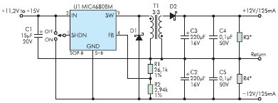 Рис. 12. Преобразователь с гальванической развязкой можно построить на большинстве ИС Micrel
