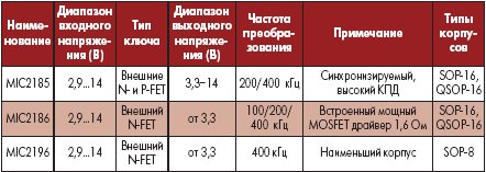 Обобщая свойства импульсных преобразователей Micrel, следует отметить их преимущества: