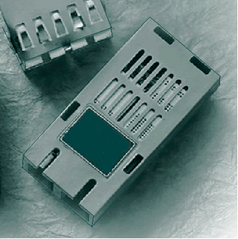 В серию MTR003X входят четыре устройства - приёмопередатчики для излучения на волне 1310 нм, совместимые со стандартом SONET ОС-3. Каждый приёмопередатчик содержит лазерный диод Фабри-Перо и фотодиод. Оптическое излучение передаётся через двойной разъем типа SC. Выходная оптическая мощность устройства составляет от -15 до -8 дБм (то есть дБ относительно 1 мВт). Входная оптическая мощность, при которой гарантируется значение коэффициента ошибки битов (bit error ratio - BER) не более 1х10-10, находится в диапазоне от -34 до 0 дБм. Электрические вход и выход дифференциальные, имеют уровни сигнала положительной ЭСЛ (ПЭСЛ) или ТТЛ. Напряжение питания +3,3 В. Корпус снабжён 9 выводами в один ряд (что обозначается "1х9") и имеет габаритные размеры 38,2х25,4х9,5 мм. Его внешний вид представлен на рис. 3. Часть устройств серии работает в диапазоне температур от 0 до +70 °С, другие - в диапазоне от -40 до +85°С.