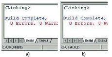 Контроль работы ЦСП можно осуществлять по сообщению, выводимому в левом нижнем углу CCS (рис. 24a — процессор работает, рис. 24b — остановлен).