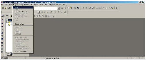 После запуска CCS создается проект. Для этого необходимо в главном меню ИСР выбрать раздел Project, а в нем— пункт New (рис. 6).