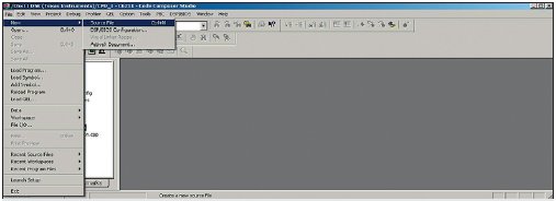 Распределение памяти указывается в файле с расширением «.cmd». Для начала необходимо его создать. В главном меню CCS выбирают раздел File, затем пункт New и подпункт Sours File (рис. 9).