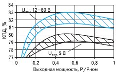где Рвых — мощность, потребляемая нагрузкой. Так как в таблице 2 приведен только типовой КПД модуля, при расчетах КПД для каждого типа модуля должен быть уточнен по графикам из рис. 3.