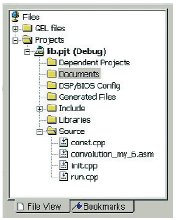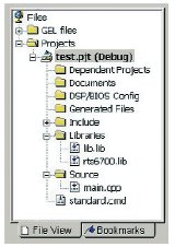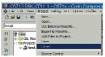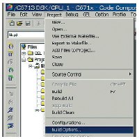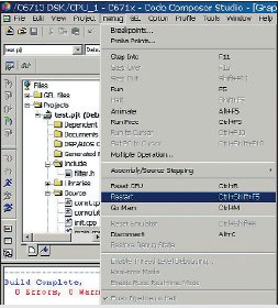 Необходимо запустить CCS и создать новый проект. Напомним, что для этого в главном меню ИСР нужно выбрать раздел Project, в нем — пункт New, затем в появившемся диалоговом окне выбираются семейство ЦСП и тип проекта, а также указываются место размещения проекта на жестком диске и его имя. В папку проекта необходимо скопировать файлы с исходным С-кодом рассмотренного в прошлой статье фильтра, за исключением файла с функцией main(). Скопированные файлы, кроме заголовочного файла, подключаются к проекту (в главном меню раздел Project, пункт Add Files to Project).