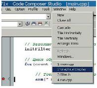 Набранный файл с кодом функции main() необходимо сократить с именем, например mainCCS.cpp, и подключить к проекту. Провести трансляцию проекта и загрузку бинарного кода в ЦСП.